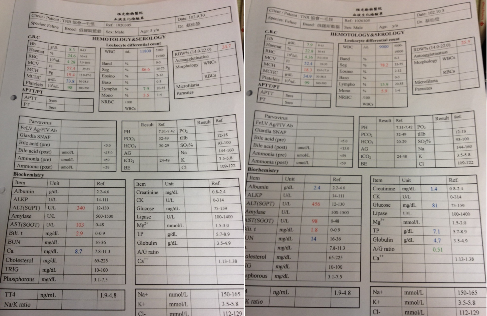 貓咪由彰化志工許桂菱和朋友協助捕捉送至台中,由熱心貓友M.l. Chen接力送回台北,送醫採樣檢驗不是黴菌也不是疥癬,血液檢查都正常,沒有愛滋白血、沒有貓瘟,食慾極佳、排尿很多、排便也很多,醫師懷疑是內分泌的問題,先將尿液和血液送檢
