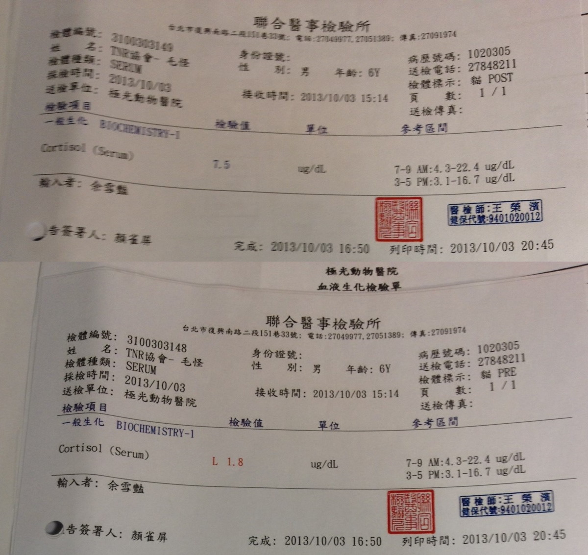 6/10檢驗報告出爐Cortisol腎上腺皮質固醇是正常貓咪的29.8倍,目前先使用內分泌藥物控制腎上腺。