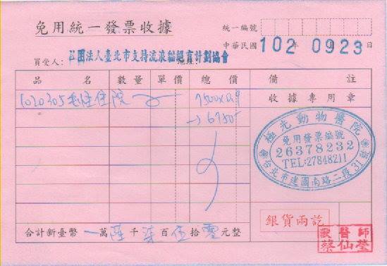 戶名:社團法人臺北市支持流浪貓絕育計劃協會