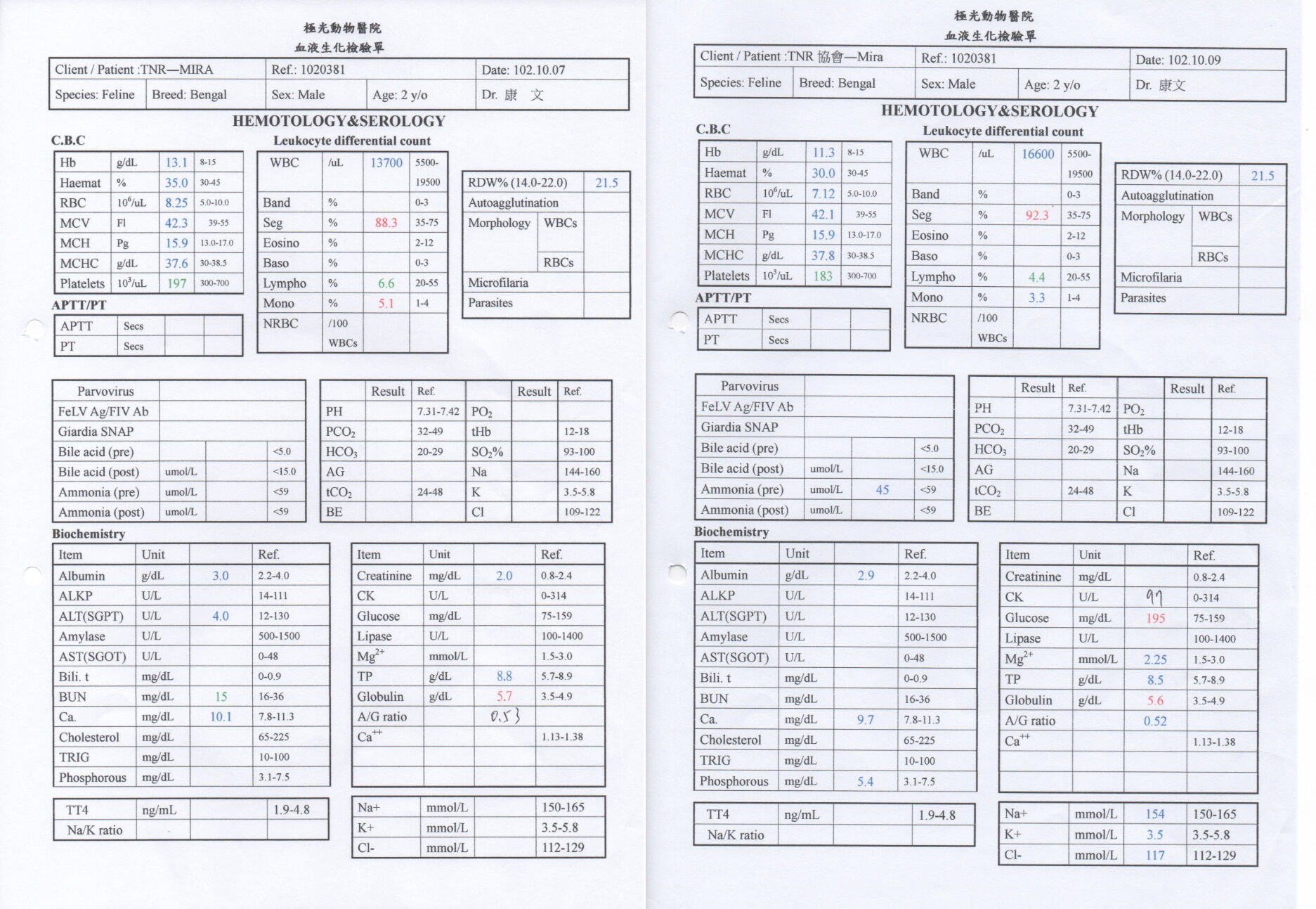 兩週前Mira開始出現四肢癱軟無力現象,