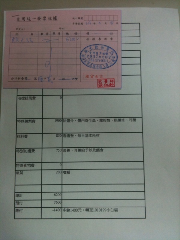 主題: 眼睛嚴重感染小貓x2 申請者姓名: 陳曉霏 花色: 申請日期: 2012-05-20 14:15:50 申請者部落格: 申請者臉書網址: 所在縣市/合作醫院: 台北市/其他院所醫助專案(醫院請先MAIL溝通) 治療費用: 6200元 需求人數: 8人 已結案 (2013-06-27 13:16:58) 報名人員: Maxine Chen(已付款)、林純華(已付款)、如(已付款)、張角倫(已付款)、周小蕾(已付款)、綠豆家族、Huang Mark(已付款)、Wanhua Chan(已付款)、Lucida Chen(已付款)、 候補人員: 小舟、小舟、 動物病情說明: 虎虎跟克克 ~