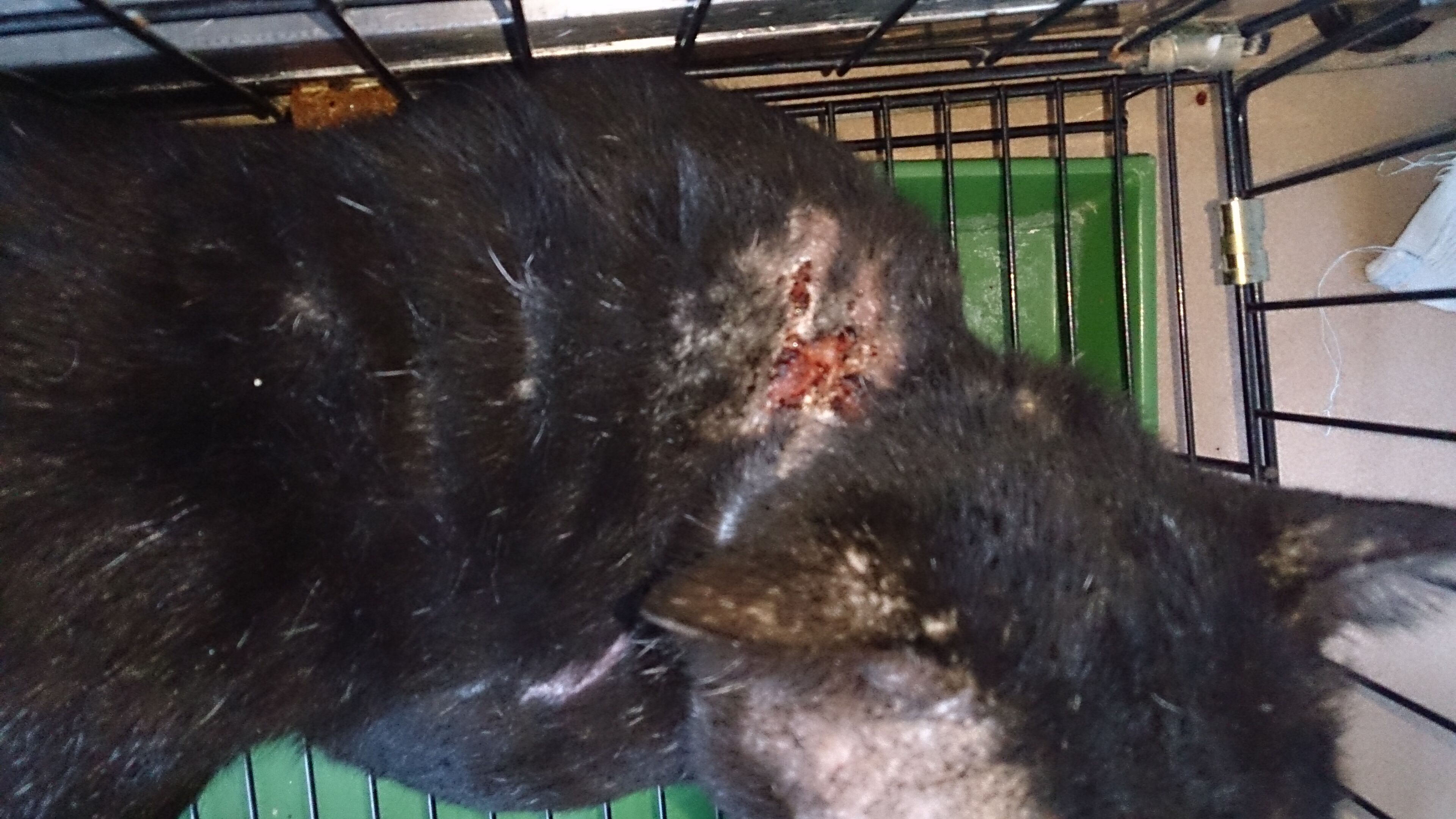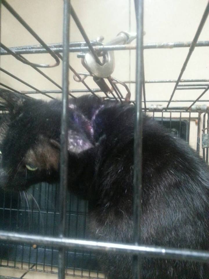 主題: 鳳山五甲脖子背部有大傷口的黑貓 申請者姓名: 劉雅雲 花色: 申請日期: 2013-11-01 20:34:26 申請者部落格: 申請者臉書網址: 所在縣市/合作醫院: 高雄市/泰安動物醫院 治療費用: 6500元 需求人數: 8人 已結案 (2014-01-10 17:54:45) 報名人員: ERic YU(已付款)、ali(已付款)、周小蕾(已付款)、Nori Huang(已付款)、Hsu Kuo Chih(已付款)、Joy Lin(已付款)、sharonhuang9(已付款)、chiawei(已付款)、 候補人員: 動物病情說明: 這是在鳳山五甲巷子發現的一隻黑貓, 家人發現他脖子背部有紅紅的大傷口, 之後連續幾天拿誘捕籠去等, 幸運的又遇見他, 因為大公貓貪吃一下子就順利誘捕到了, 帶到協會合作醫院照顧,大面積傷口需換藥, 但貓咪並不親人, 所以醫生建議不要太常麻醉換藥, 但每天會幫他打消炎針, 原本10月初傷口復原差不多準備要出院, 但可能是因為傷口復原有點癢, 突然隔天去看他, 他又抓出一個洞, 目前已經康復了喔. 感謝協會與大家的幫忙.