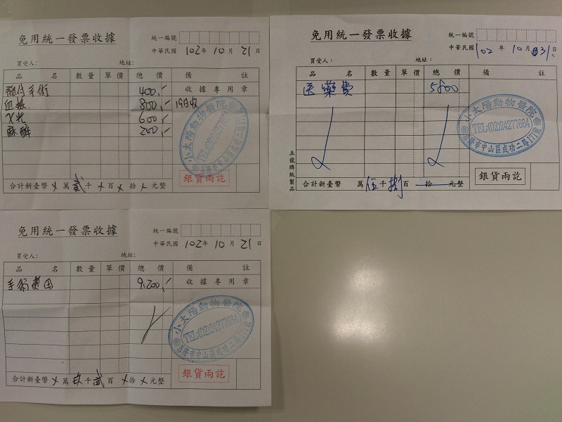 主題: 基隆誤吞魚鉤(雙鉤)玳瑁貓 申請者姓名: Carol Wang 花色: 申請日期: 2013-11-12 15:10:15 申請者部落格: http://chenching823.pixnet.net/blog 申請者臉書網址: https://www.facebook.com/carol.wang.823 所在縣市/合作醫院: 基隆市/小太陽動物醫院 治療費用: 17000元 需求人數: 19人 已結案 (2014-01-10 17:54:41) 報名人員: Fiona WU x2(已付款)、林珊珊(已付款)、nicole chen(已付款)、Choco Chen(已付款)、grace0710(已付款)、小黃(已付款)、Ruiz(已付款)、00(已付款)、FiFi(已付款)、Weiwen Tu、Weiwen Tu(已付款)、Sky Lin(已付款)、麵貓匪(已付款)、SASA(已付款)、Emily Chou(已付款)、ERic YU(已付款)、Patrick(已付款)、Way Chen(已付款)、Fan Chang(已付款)、 候補人員: 動物病情說明: 10/19傍晚發現貓咪嘴邊拖一條綠色魚線,6點多送至小太陽檢查結果是吞魚鉤(雙鉤)一個在胃一個在腸還有一個金屬物在食道,有發炎現象,已在20日開刀 動物近況說明: 開刀後留院治療到10/31出院,由朋友接手照顧到11/8放回原地,9~10日有回外木山餵貓探視,狀況良好