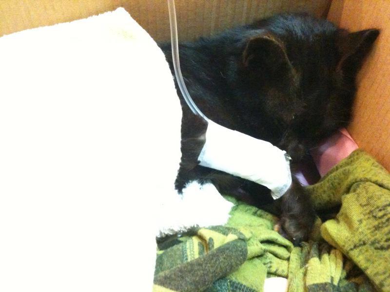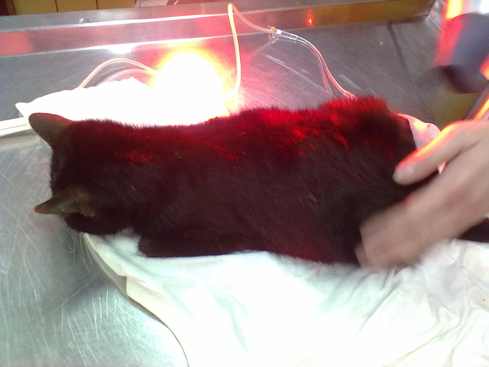 2/12由協會會員陳曉霏接手聯絡甘小姐轉長沁醫院救貓命,醫生初步檢驗結果是白血球偏高、發燒、脫水現象,初步排除貓瘟感染問題。