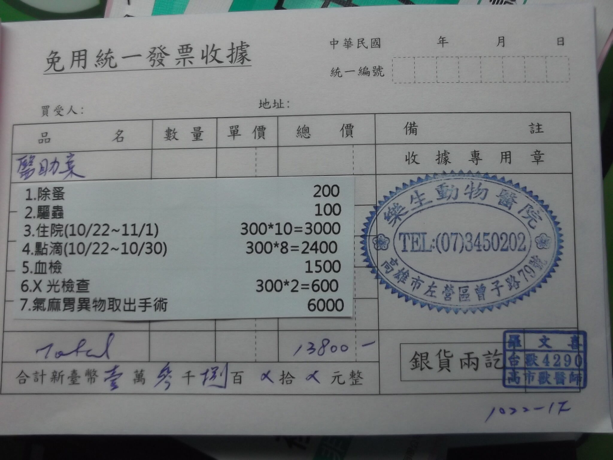 收據可抵稅請將地址mail至cashier@tnrtw.org0912940006763