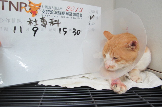 主題: 疑似捕獸夾的貓咪 申請者姓名: Sally Chang 花色: 申請日期: 2013-11-17 00:00:25 申請者部落格: 申請者臉書網址: 所在縣市/合作醫院: 高雄市/恩澤動物醫院 治療費用: 13192元 需求人數: 15人 已結案 (2014-01-10 17:53:19) 報名人員: SeiJi Lin(已付款)、aky(已付款)、Ou Han x2(已付款)、蜜兒(已付款)、Chien Ping Chuang(已付款)、yuki x2(已付款)、orange(已付款)、霿霜雪(已付款)、Emily Chou(已付款)、Wendy Tseng(已付款)、ERic YU(已付款)、曹小文 x2(已付款)、 候補人員: 動物病情說明: 阿獸夾是醫生給他的名字,