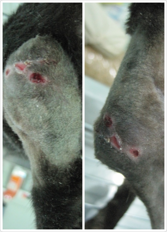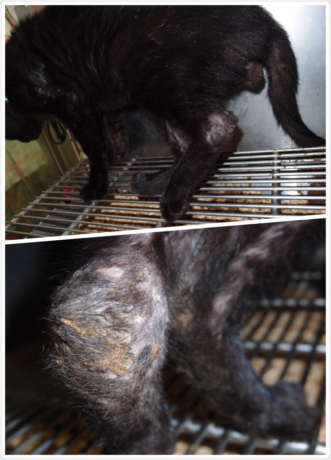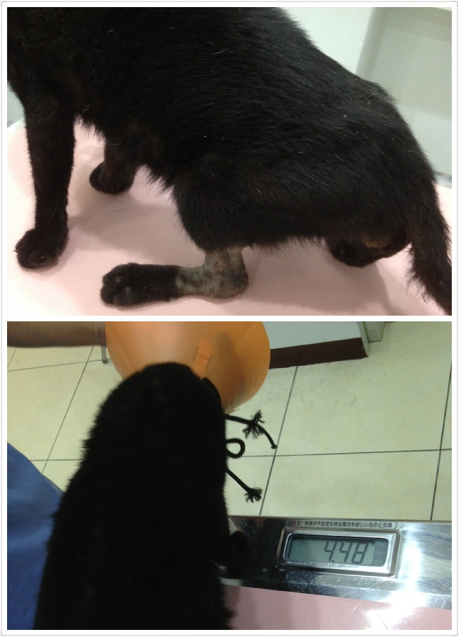 主題: 後腳有磨傷潰爛的跛腳貓(黑帓帓) 申請者姓名: 王靜儀 花色: 申請日期: 2013-11-16 18:49:10 申請者部落格: 申請者臉書網址: 所在縣市/合作醫院: 台中市/崇德動物醫院 治療費用: 4000元 需求人數: 5人 已結案 (2014-01-10 17:51:28) 報名人員: lin789 x2(已付款)、蔡秀芳(已付款)、Ou Han x2(已付款)、 候補人員: Fatvivian Wang(已付款)、 動物病情說明: 原先只有跛著右後腳,可能是打架的關係,造成左後腳關節處有磨損、潰爛、完全無法碰地、也不讓人清潔傷口(如圖2)。