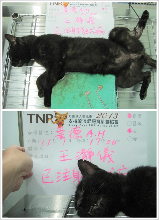 11�3黑帓帓有流鼻水和拉肚的現象,食慾也差很多,醫師說可能氣候變化,又加上節紮完抵抗力會變差,已有投藥治療。