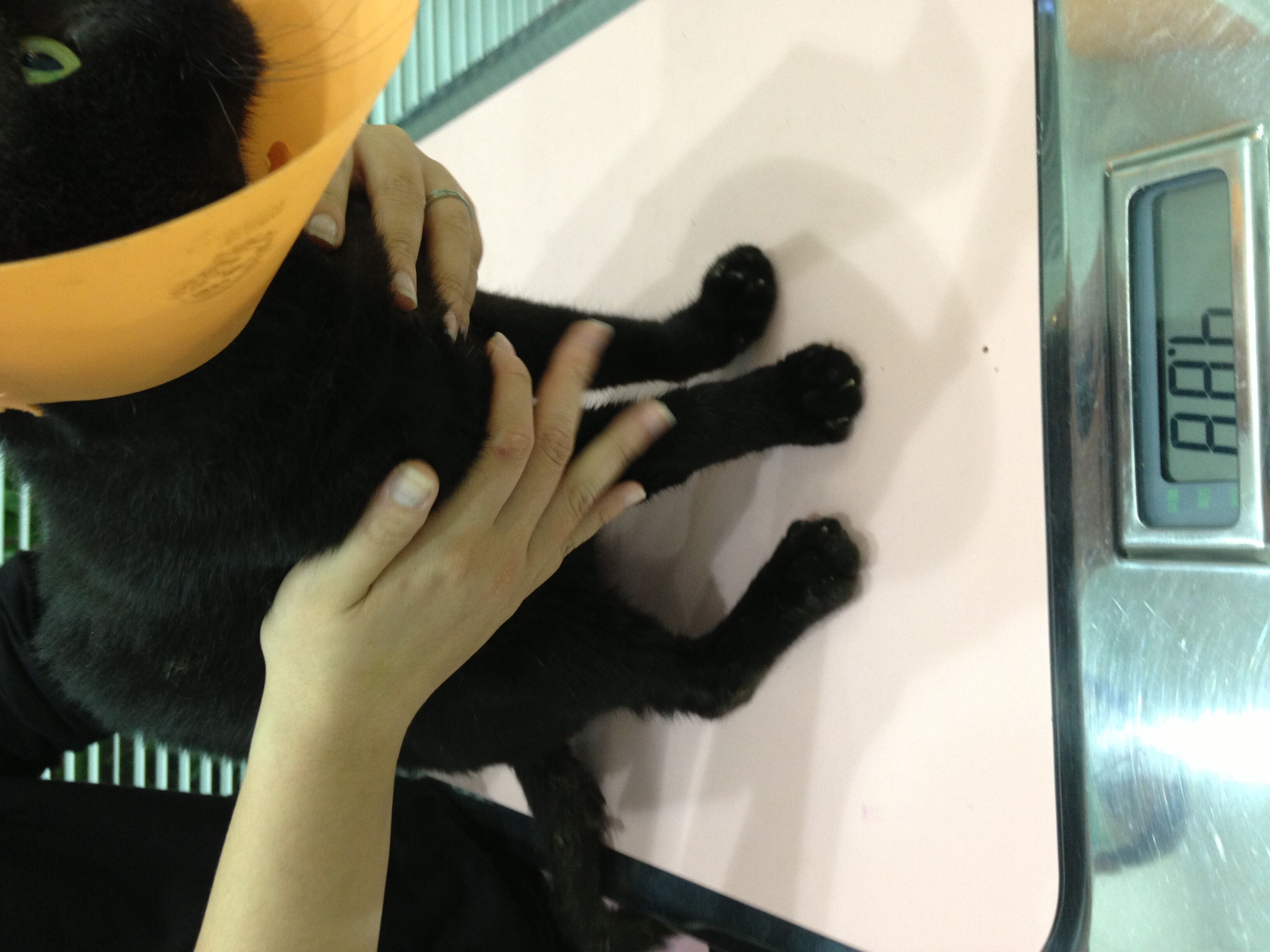 11�13(如圖7)黑帓帓在醫院吃得飽又悠哉,短短1個禮拜,竟然胖了0.4kg,已經重達4.88kg,