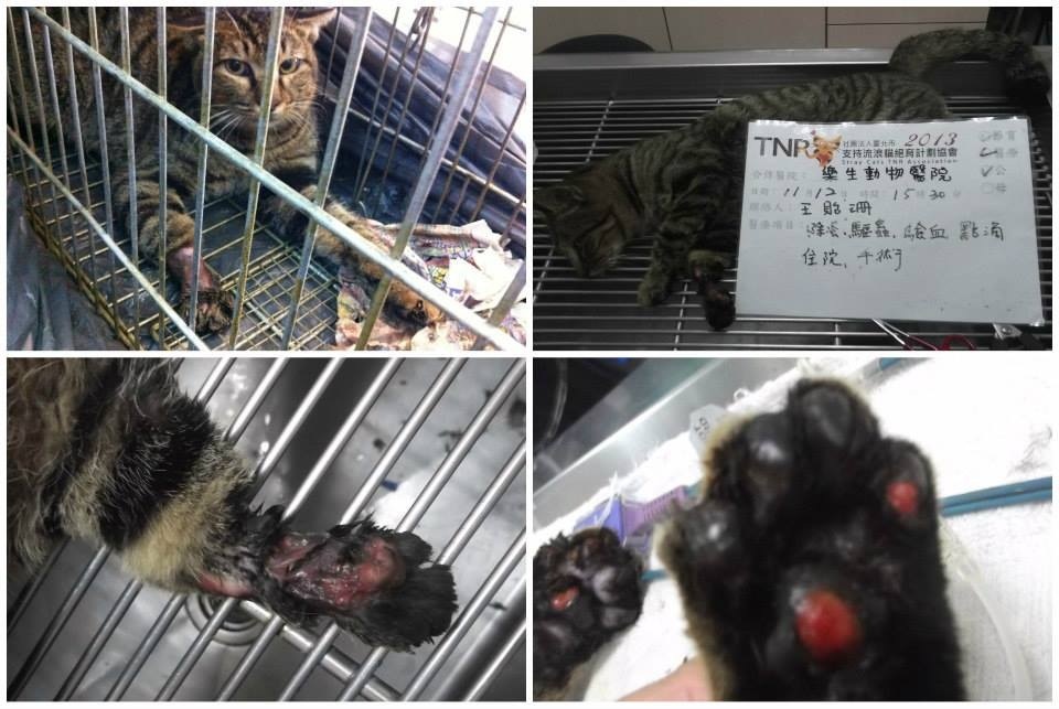 需截肢,其餘三隻腳的腳掌都有球型傷痕,