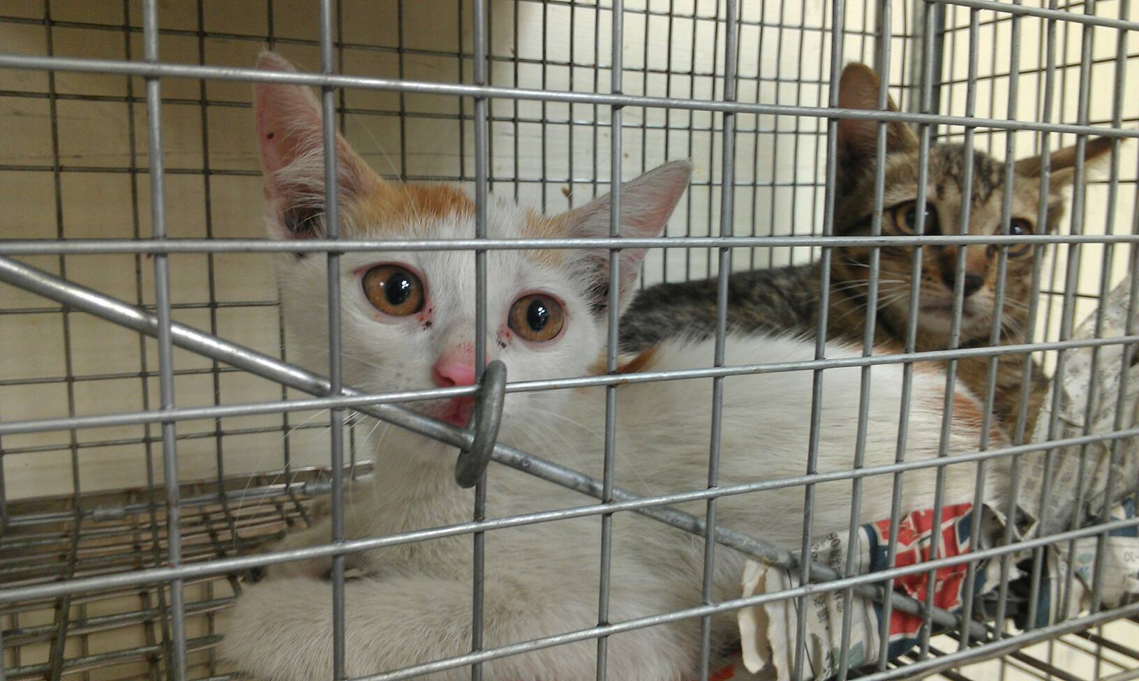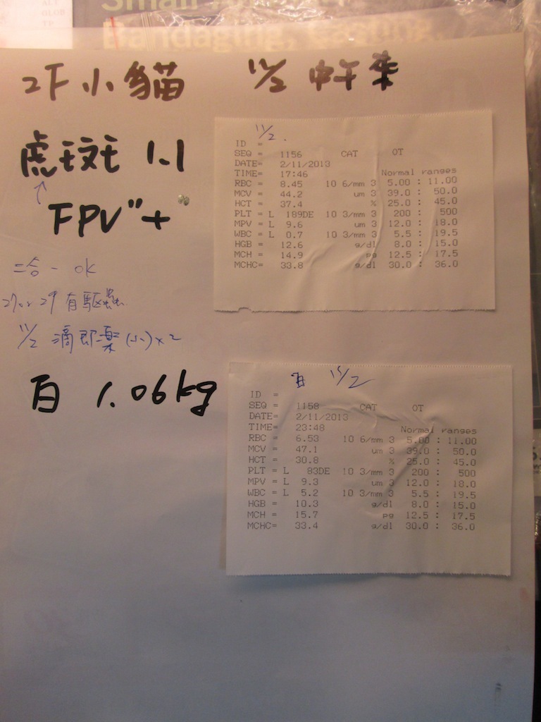 11/2 10:23pm- 白橘貓開始在醫院也出現症狀,目前兩隻都在治療中,希望他們撐得過來 !!
