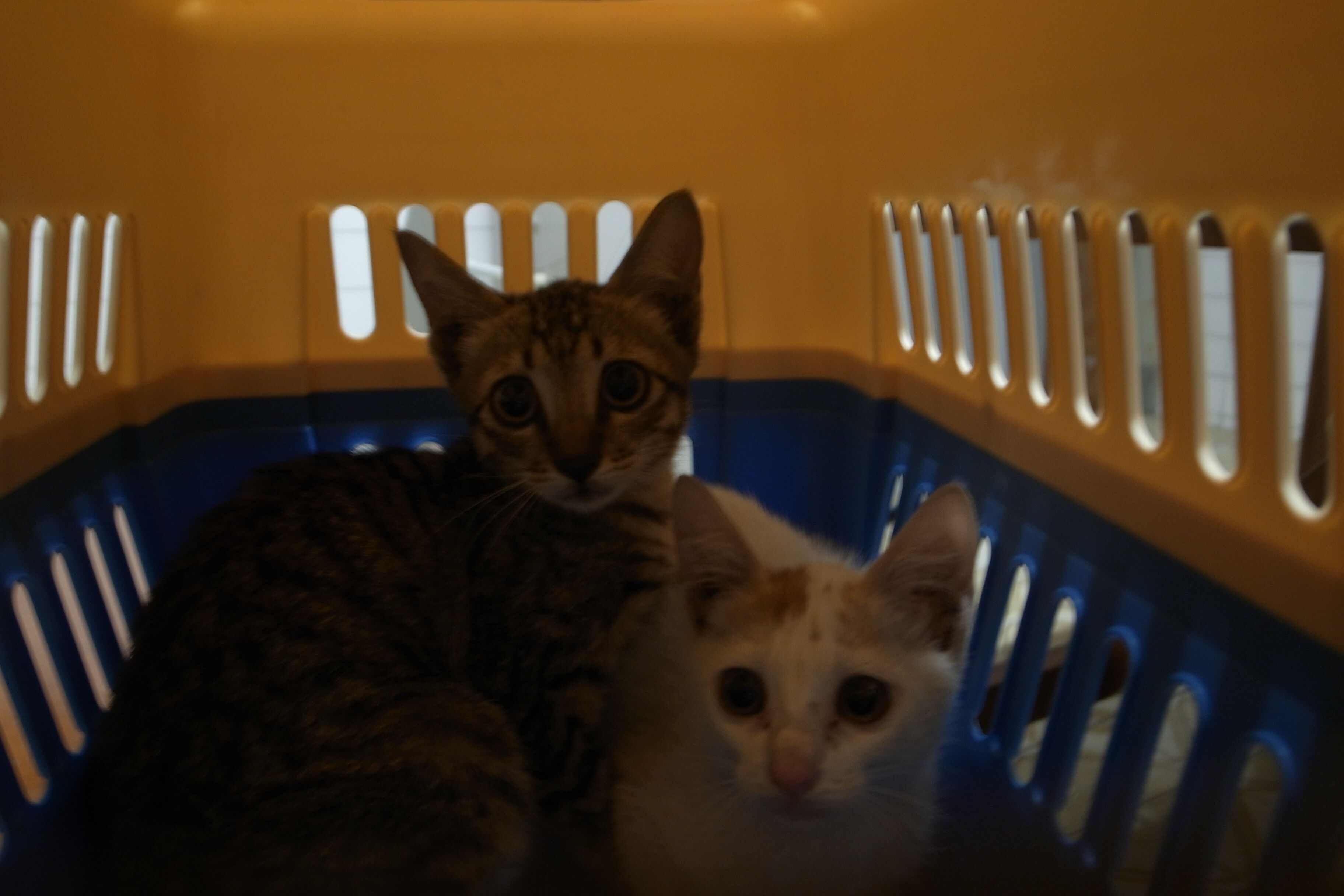 10/29:下午獲得同學願意協助中途,有賴中途朋友支付三天醫療費用,當晚即接貓出院暫時安置我這邊,五天後將轉至同學住處中途。兩隻貓咪當天雖有點緊張,但一摸就會呼嚕很久,享受人類的親近。食慾正常愛說話,會互相照顧。