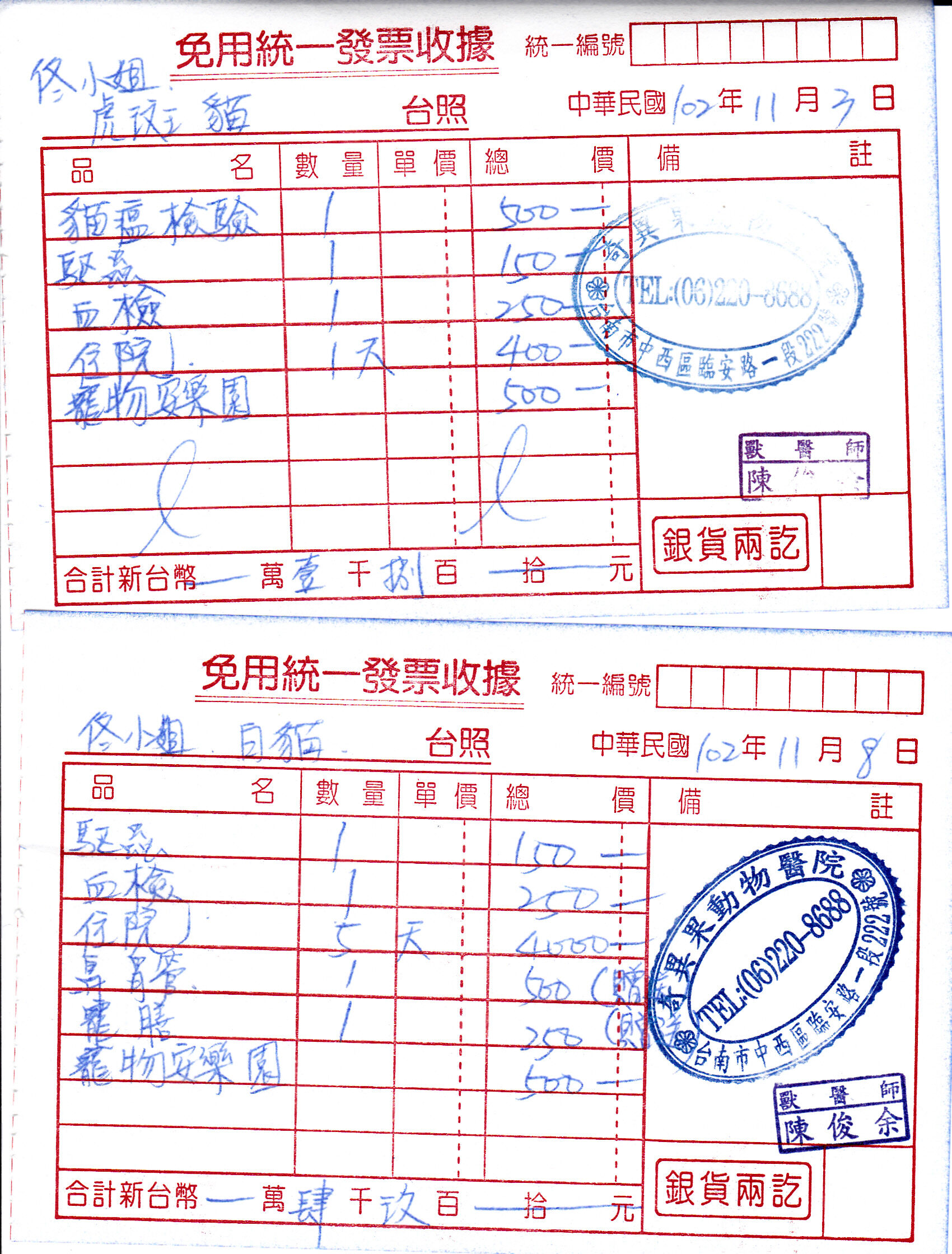 11/2:虎斑早上還是吐,接著拉。當天兩隻皆立刻送醫,虎斑驗出貓瘟,全力搶救。