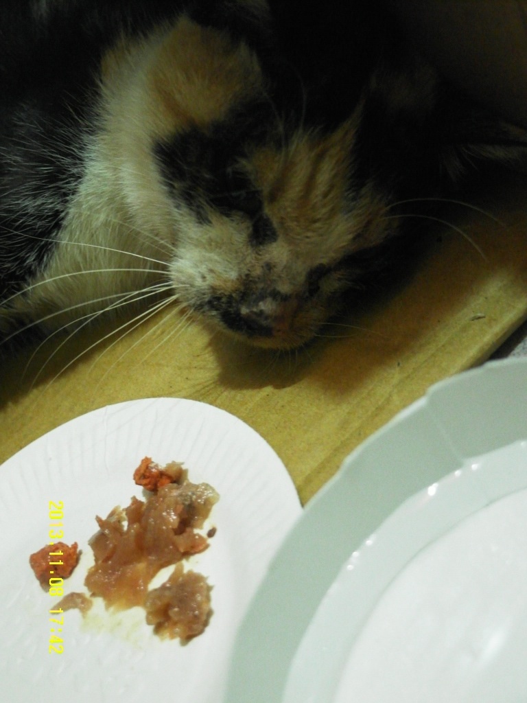主題: 就學中,醫療費不足 申請者姓名: 古旻潔 花色: 申請日期: 2013-11-23 13:37:28 申請者部落格: 申請者臉書網址: 所在縣市/合作醫院: 新北市/維康動物醫院 治療費用: 7300元 需求人數: 9人 已結案 (2013-12-19 18:16:20) 報名人員: Weirong(已付款)、Anita Cheng(已付款)、Kate(已付款)、Guan-Yi Li(已付款)、李 其展(已付款)、Emily Chou(已付款)、Ago Walker(已付款)、國若茵(已付款)、小麥(已付款)、 候補人員: 動物病情說明: 11/7晚上十點,我在新北市三芝的馬路中間看到了一隻虛弱的小花貓,車來來往往,牠很想走可是走不動,跳一次就滾好幾圈,抱起牠的時候牠沒有力氣反抗,只是微微的哈氣,我不確定牠的腳是不是受傷,至今(12/8,13:50)連一口水都沒喝,一口罐頭都沒吃,但卻一直努力的呼吸著。