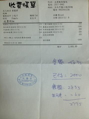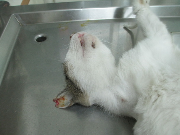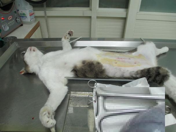 現此貓仍暫時於太樸醫治中動物近況說明: 目前貓咪已由欣旺醫院引產後結紮,因貓咪車禍有引產結紮, 身體虛弱, 故讓貓咪再欣旺多休息一星期後R回!