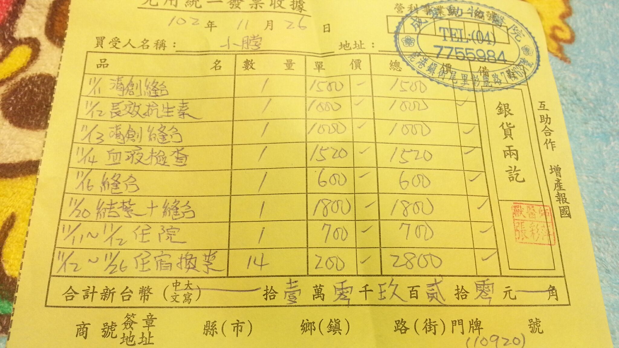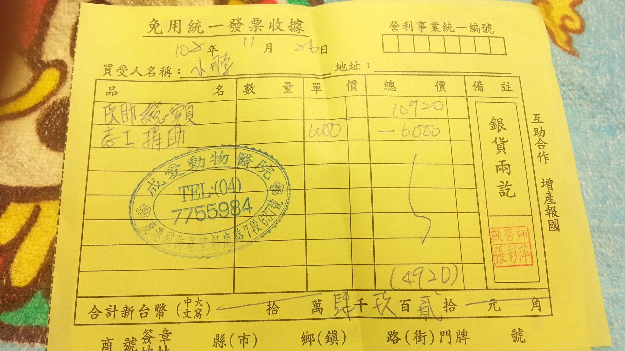 醫療費總計10920元,由志工這邊負擔6000元,其餘還請大家多多幫忙了!