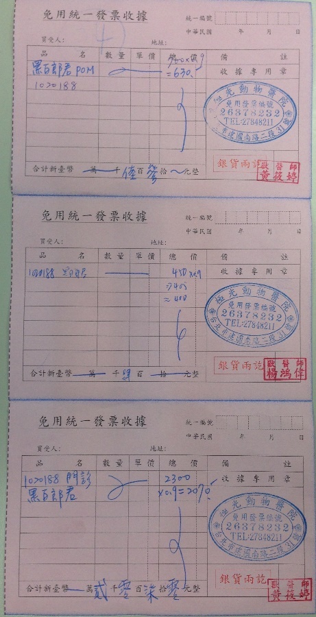 主題: 鼻氣管炎的藍寶和黑白郎君 申請者姓名: 臺北市支持流浪貓絕育計劃協會 花色: 申請日期: 2013-11-21 15:05:38 申請者部落格: 申請者臉書網址: 所在縣市/合作醫院: 台北市/極光動物醫院 治療費用: 5640元 需求人數: 13人 已結案 (2013-12-19 18:18:25) 報名人員: 傲刀冰玄 x2(已付款)、Hanna Hsieh(已付款)、欣格萬寶通切貨公司 x2(已付款)、peggy x2(已付款)、Daisy Zhang(已付款)、Daisy Zhang、yuki x3(已付款)、Norman Wu(已付款)、草本菟刻(已付款)、 候補人員: 動物病情說明: 藍寶、黑白郎君哥倆好,一個住十樓、一個住六樓還可以一起感冒,到動物醫院檢查,黑白郎君個大不中用居然發燒,倦倦的,連耳朵捲起來都懶的動,東掐掐、西捏捏都沒有關係,順便檢查耳朵還有身體各部位,卻發現黑白郎君的腳掌都破皮滲血,一併治療,血檢正常,單純的鼻器管炎引起的發燒,吃抗生素加噴霧先回協會繼續照顧,期間回診兩次,狀況越來越好體重從2.9公斤狂增到3.3公斤,現在是頭好壯壯的青少年。