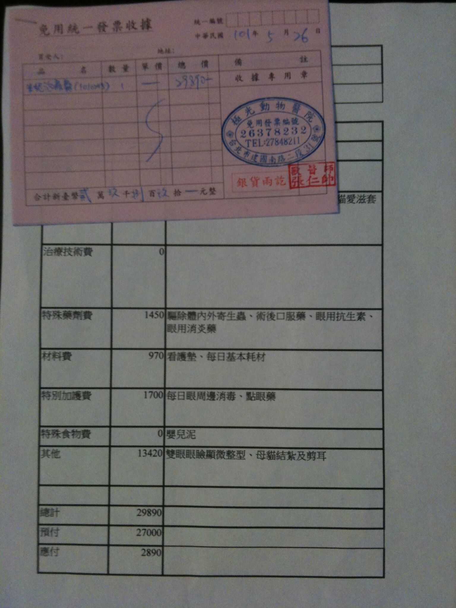 主題: 讓瞎眼看見一道光 申請者姓名: 臺北市支持流浪貓絕育計劃協會 花色: 申請日期: 2012-05-27 22:29:13 申請者部落格: 申請者臉書網址: 所在縣市/合作醫院: 台北市/其他院所醫助專案(醫院請先MAIL溝通) 治療費用: 33000元 需求人數: 66人 已結案 (2012-06-22 00:10:44) 報名人員: inin(已付款)、Yushan Hsieh(已付款)、Zinn Chang(已付款)、Ta-chun Lin(已付款)、菲比(已付款)、Huitzu Wu(已付款)、WeiLin Chen(已付款)、Reila(已付款)、Mr.C&C(已付款)、陳立蓉(已付款)、Shu Jung Yu(已付款)、Aidan Shih(已付款)、lee ping(已付款)、Wang Andyson(已付款)、賴虹方(已付款)、Iris Cho(已付款)、嘟嘟(已付款)、嘟嘟(已付款)、kaidoubibi(已付款)、Carrie Hsu(已付款)、Carrie Hsu(已付款)、小坤(已付款)、喬Chu(已付款)、Lia(已付款)、허혜여(已付款)、Terry Kuo(已付款)、Terry Kuo(已付款)、Terry Kuo(已付款)、Terry Kuo(已付款)、陳震嶼(已付款)、Anita Yin(已付款)、Anita Yin(已付款)、socket(已付款)、Mia Chen(已付款)、Bonorva、Emily Chou(已付款)、Emily Chou(已付款)、Welltea Wu(已付款)、Bonorva(已付款)、李梨子(已付款)、ninon(已付款)、波波(已付款)、波波(已付款)、白魯曼(已付款)、白魯曼(已付款)、test、Kero Yen(已付款)、鐘曼菱(已付款)、Kero Yen(已付款)、Justin Verlander(已付款)、polly(已付款)、小舟(已付款)、np0041(已付款)、np0041(已付款)、Akim Yang(已付款)、Elsa Tu(已付款)、Elsa Tu(已付款)、Alina Lin(已付款)、Alina Lin(已付款)、Kessel Pan(已付款)、Kessel Pan(已付款)、五貓的媽(已付款)、philip(已付款)、philip(已付款)、小節(已付款)、小節(已付款)、玉米湯(已付款)、Karen(已付款)、 候補人員: ㄚ芳、劉蕊瑄、吉布弟、小舟、 動物病情說明: 因為你的愛,