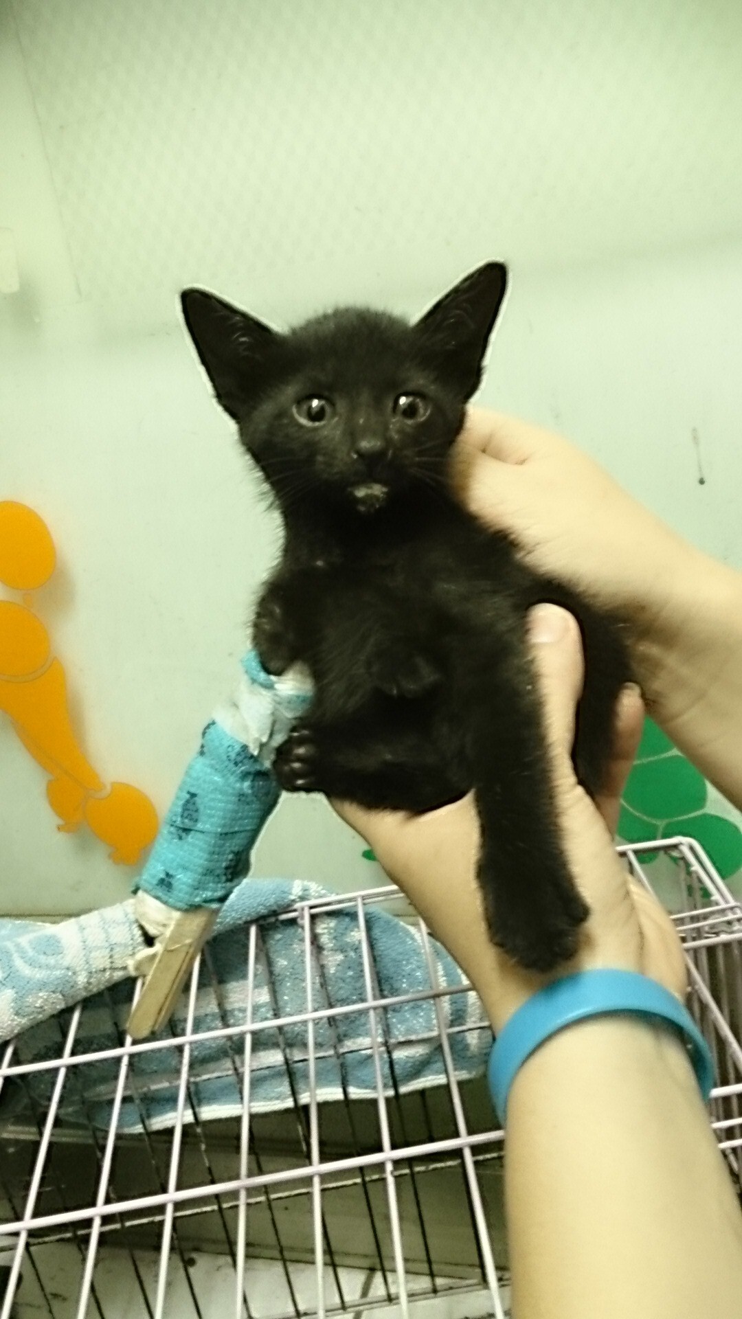 狂犬疫苗費用由志工負擔動物近況說明: 由發現的貓友帶回照料,已尋求中醫針灸但醫生認為沒有幫助,故需等待小黑貓再大一點觀察扁骨連接生長情況才能再評估!
