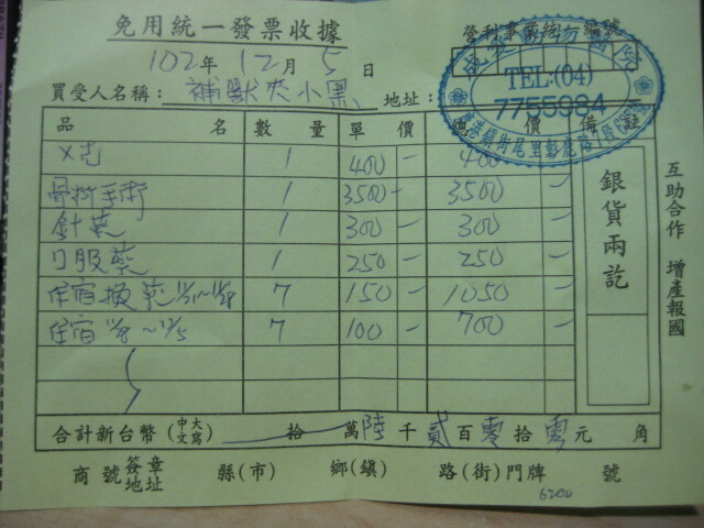 收據可抵稅請將地址mail至cashier@tnrtw.org0912940006763