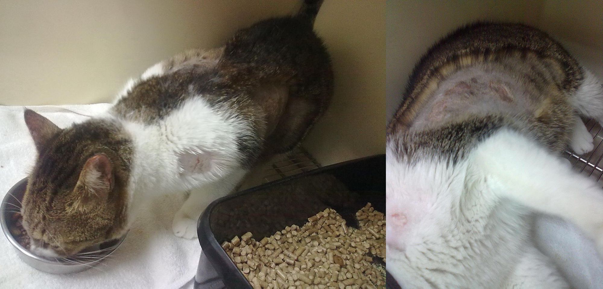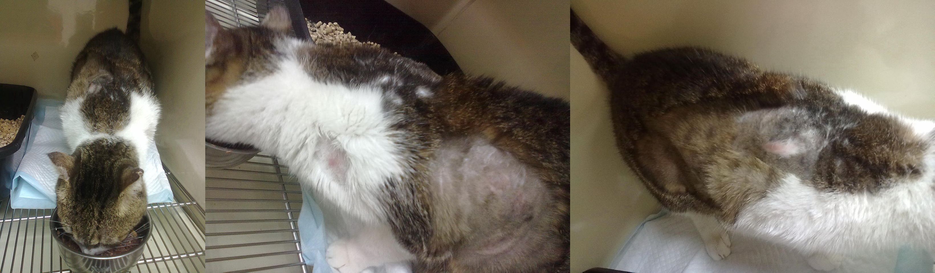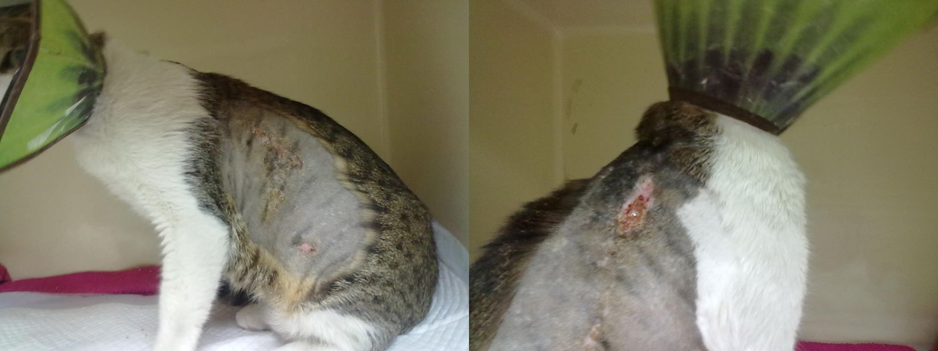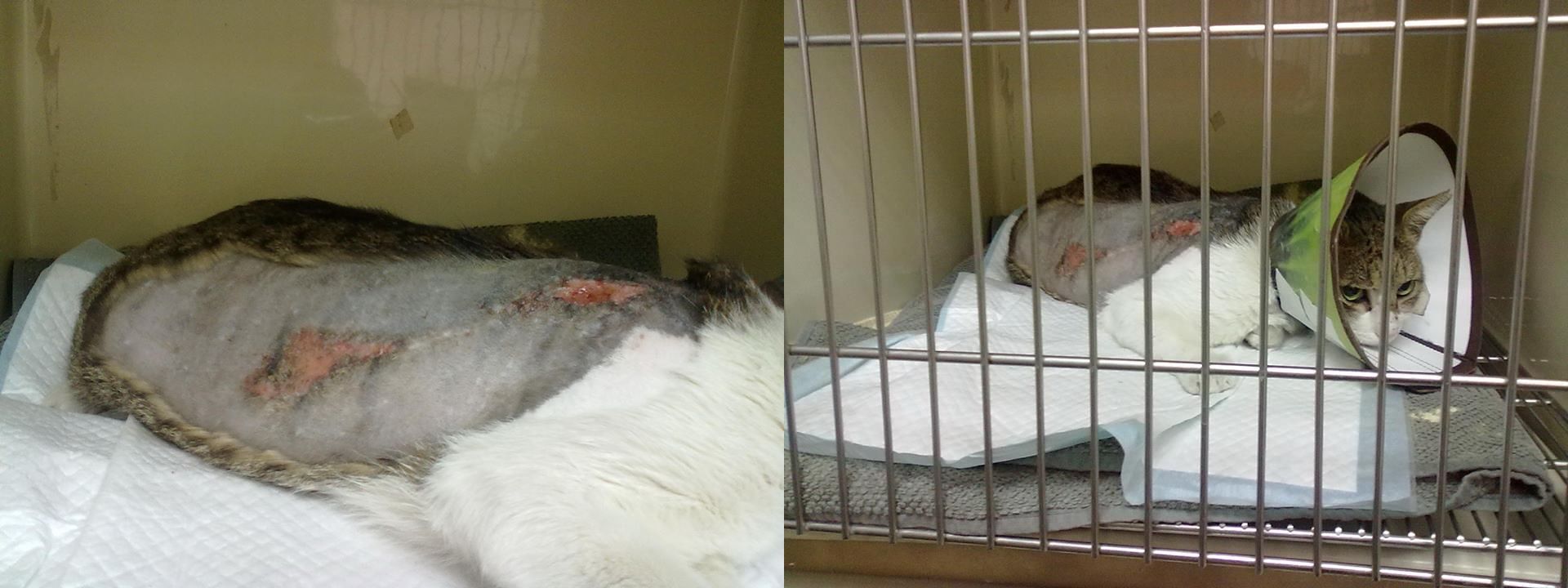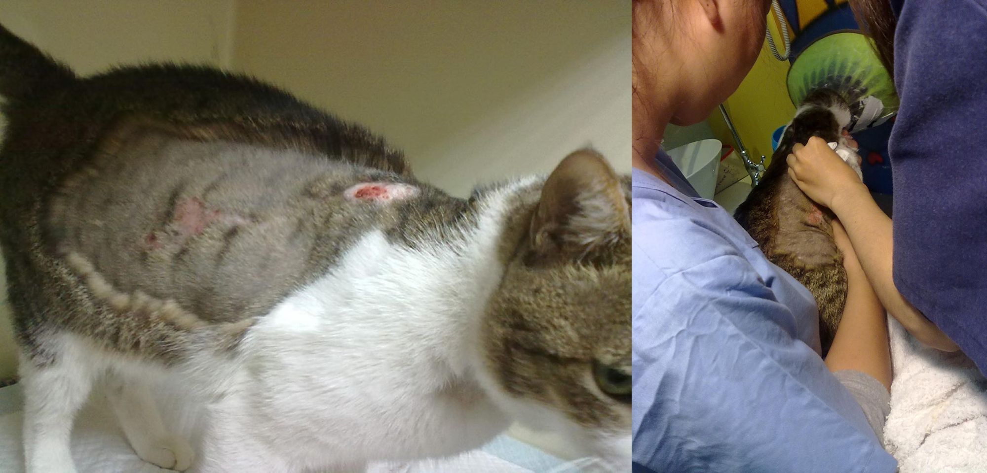 動物近況說明: 阿咪恢復的還不錯.淺層的傷口都已結痂.深層的傷口還需一點時間....原本預估要出院了.卻發現傷口周圍和雙耳眉毛都是黴菌.之前因為大片亂七八糟的傷口而不易察覺.現在很明顯看的出來..所以還是要繼續治療.免的再因搔癢而破皮...