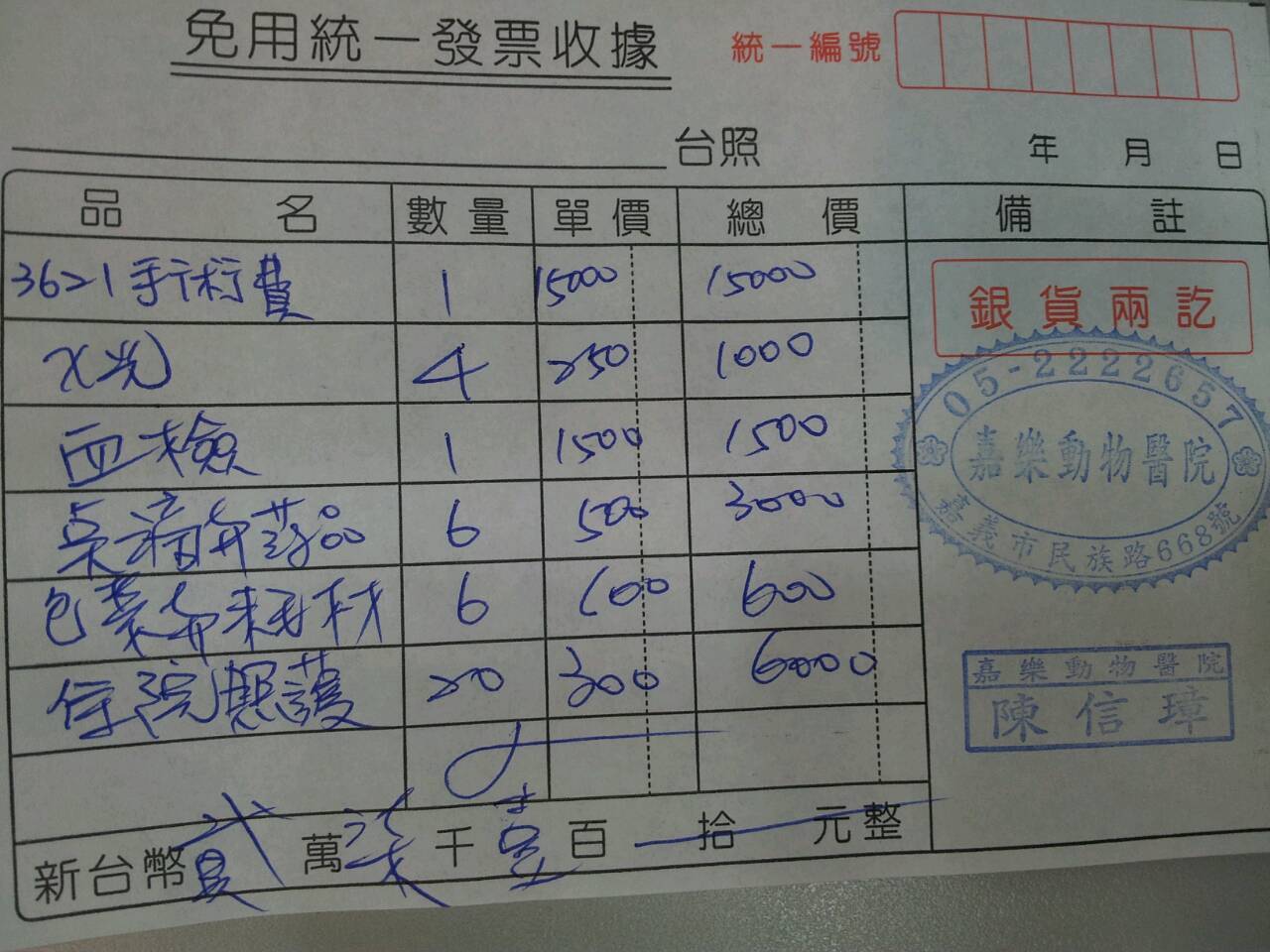 目前在嘉樂動物醫院上點滴使他脫水情況改善後,再施作手術。