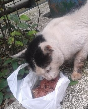 可是當時沒多的籠子可誘捕,所以也就先開罐頭給牠吃,打算隔夜再過去抓牠,但是後來幾次過去卻都找不到..當下誤以為該不會掛了..