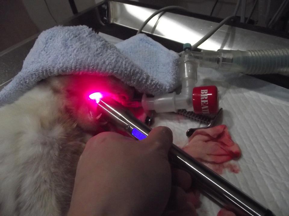 醫師先做鎮定洗澡處理,因當下身體實在太髒了,接著血檢檢查,白血球3萬9+黃疸指數偏高+貧血+口腔有著潰爛的口炎