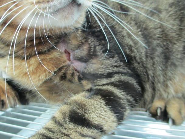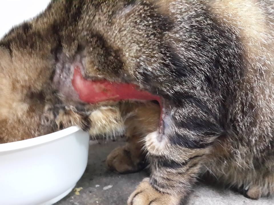 主題: 基隆廟口前肢燙傷的虎斑貓咪 申請者姓名: 臺北市支持流浪貓絕育計劃協會 花色: 申請日期: 2013-12-06 13:23:38 申請者部落格: 申請者臉書網址: 所在縣市/合作醫院: 台北市/欣旺動物醫院 治療費用: 10000元 需求人數: 11人 已結案 (2014-01-10 17:47:17) 報名人員: Bonnie Lee(已付款)、林宇恬(已付款)、傅晏緹、Hsiao-Peng Su(已付款)、Michelle Chou(已付款)、Bella Hung(已付款)、beforn(已付款)、Mouette(已付款)、Sky Lin(已付款)、Ago Walker(已付款)、Kamir(已付款)、Child Lee(已付款)、 候補人員: 動物病情說明: 民眾通報基隆廟口有虎斑貓咪胸口、前肢有大面積的燙傷痕跡,沒有皮膚包覆血淋淋的,但精神看起來尚可,希望協會協助就醫,基隆志工陳小姐前往查看,發現貓咪,立即捕捉送醫,因傷口位置無法包紮且貓咪很緊張,會抓咬,為避免造成貓咪緊迫,使用抗生素治療,觀察傷口變化情形,還好傷口有慢慢縮口,越來越小,經過一個月的治療,貓咪已經完全康復,廟口裡還有小橘貓兄弟在等他回家,R回後請攤販多為照顧。醫療費用還請各位幫忙。