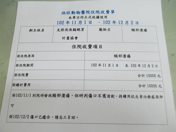 戶名:社團法人臺北市支持流浪貓絕育計劃協會