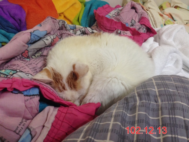 102.12.8Mary白血球恢復正常值,食慾也變好,早上志工帶的鮮魚秒殺,下午的魚條也嗑光,但掃超音波卻出現腹水,明天早上會抽腹水送檢