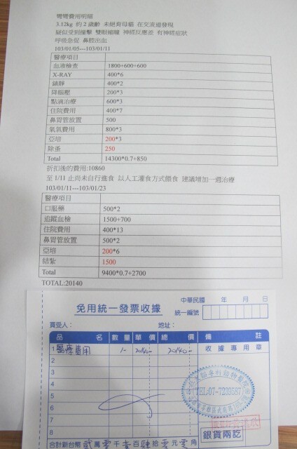 第一階段醫療明細如下: