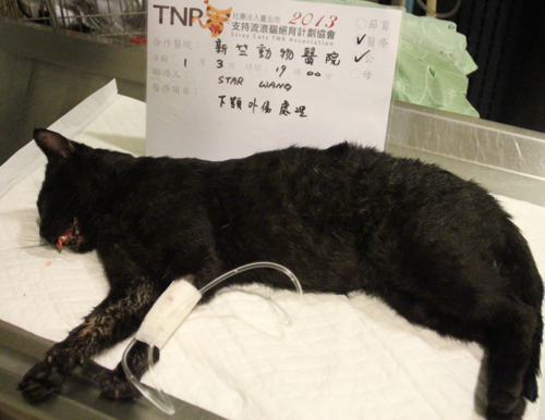 主題: 南寮收容所車禍大黑貓 申請者姓名: Star Wang 花色: 申請日期: 2014-02-08 21:20:02 申請者部落格: 申請者臉書網址: https://www.facebook.com/star.wang2 所在縣市/合作醫院: 新竹市/新竺動物醫院 治療費用: 20000元 需求人數: 22人 已結案 (2014-03-24 18:17:51) 報名人員: 周星星(已付款)、Sunny Chen x2(已付款)、Patrick x2(已付款)、詩詩(已付款)、姆姆 x3(已付款)、Smango Liu(已付款)、婷婷 x12(已付款)、 候補人員: 亭亞、Felicia Weng、 動物病情說明: 20140103接到南寮收容所方電話,