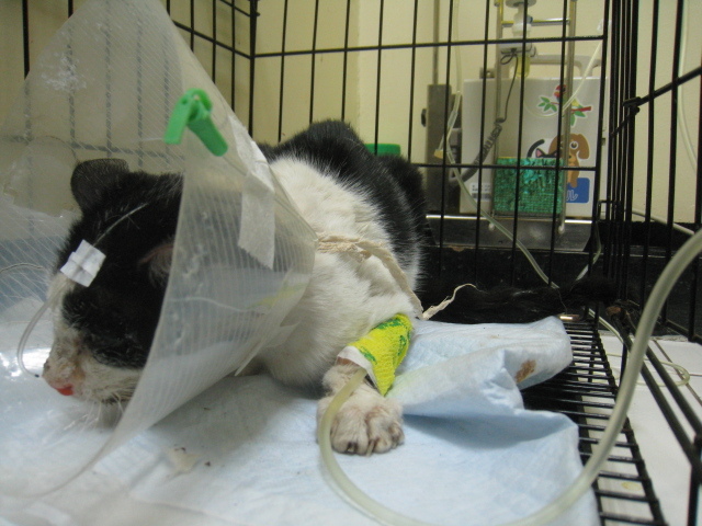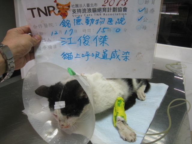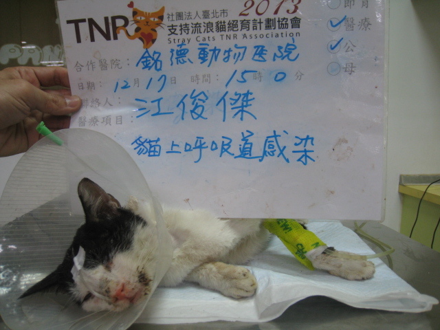 主題: 新莊收容所嚴重鼻氣管炎的黑白貓 申請者姓名: 臺北市支持流浪貓絕育計劃協會 花色: 申請日期: 2014-01-07 18:19:31 申請者部落格: 申請者臉書網址: 所在縣市/合作醫院: 新北市/銘德動物醫院 治療費用: 7830元 需求人數: 17人 已結案 (2014-02-07 15:30:41) 報名人員: 壹零(已付款)、陳璇璇(已付款)、明旺工程行(已付款)、Eva Lou(已付款)、Hllen Liu(已付款)、Ping Meng(已付款)、Patrick(已付款)、Kiki Liang(已付款)、Angel Cheng(已付款)、高永顗 x2(已付款)、Erin Lin x2(已付款)、Catfood Wei x4(已付款)、 候補人員: April Tsung、Summer、 動物病情說明: 新莊收容所帶出一批成貓,黑白貓咪有明顯的鼻氣管炎現象,治療第一天的血檢報告顯示,有貧血與白血球下降的趨勢,還有明顯的溶血情況,這些主要都是因為他年紀輕就感染到卡里西病毒,雖然當天緊急的給予點滴輸液,與安置鼻胃管灌食貝克蛋白營養液,但在2天後的血檢,病況惡化的很快,出現敗血症狀白血球高達七萬七,與DIC(血管內瀰漫性凝血不全)並出現呼吸急促與開口呼吸,緊急給予氧氣箱加護照顧,但仍在第4天的凌晨不幸過世。醫療費用還請各位幫幫忙。