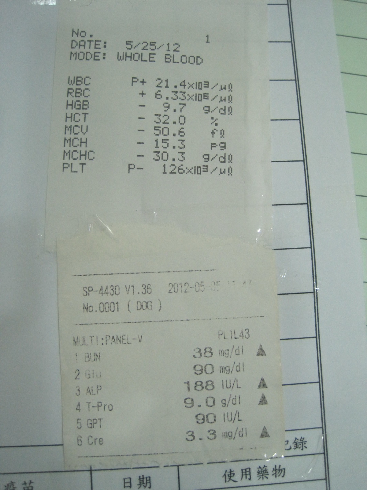主題: 有腎臟病和梨形鞭毛蟲的虎斑貓貓. 申請者姓名: 敏大哥 花色: 申請日期: 2012-06-02 21:42:36 申請者部落格: 申請者臉書網址: 所在縣市/合作醫院: 台北市/詠欣動物醫院 治療費用: 3500元 需求人數: 5人 已結案 (2012-12-01 19:31:28) 報名人員: 小舟(已付款)、philip(已付款)、Sherry Fang(已付款)、嘟嘟(已付款)、嘟嘟(已付款)、 候補人員: 小舟、小舟、 動物病情說明: 平溪張媽媽抓的貓.單耳虎斑貓最近不想吃,毛色也不夠漂亮.就醫後,發現已經有腎臟病和梨型鞭毛蟲引起的拉肚子.住院治療後,目前精神食慾已經恢復了.
