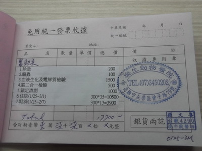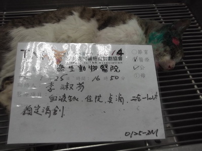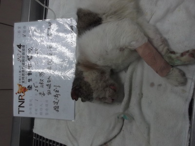 主題: 高雄壽山收容所 申請者姓名: 李淑芬 花色: 申請日期: 2014-03-04 23:33:27 申請者部落格: 申請者臉書網址: 所在縣市/合作醫院: 高雄市/樂生動物醫院 治療費用: 17700元 需求人數: 19人 已結案 (2014-05-18 09:41:05) 報名人員: Alison Lee(已付款)、山豬小孩 x3(已付款)、Ou Han x2(已付款)、Mimi Liu(已付款)、胡貓影、郭瑞希、lavinia x3(已付款)、Jeffrey Chen(已付款)、茵琪 x2(已付款)、青菜一把(已付款)、王美蓮 x2(已付款)、leaf0(已付款)、小四(已付款)、小可(已付款)、 候補人員: 動物病情說明: 每年農曆過年前,志工們都會想盡辦法前往各大收容所將大批的貓咪帶出就醫結紮,就怕他們撐不過這麼長的連假,就怕所方提前"清空"貓舍,今年高雄志工,於1月25日前往壽山收容所進行農曆年前救援貓舍行動第一梯次,一進貓舍第一眼就看到牠,鼻一酸,淚不自覺得一直掉,真的沒辦法有其他的反應,你能想像那畫面嘛!一隻驚恐不安的貓咪 縮在籠子的角落裡,而牠的半邊臉全都被膿和組織液給佔滿了,眼睛也睜不開,身體部分還有嚴重的皮膚病,全身發出陣陣惡臭,精神狀況也不好,完全沒活動力可言,這樣的牠怎麼撐得過收容所的病菌感染,這孩子到底發生了甚麼事!沒時間想那麼多了,加快腳步辦完領養手續,快車前往樂生醫院,一進醫院立刻請醫生幫他看診,醫生診斷嚴重疥癬貓,且額頭有個將近50元硬幣大小且很深的傷口在化膿,經初步驗血此貓有愛滋且白血球偏低及尿毒症,醫生初步先清理傷口並給予點滴及抗生素先治療,1月25日─2月7日施以皮下點滴,及抗生素,消炎藥治療,這孩子的精神狀況依然不是很好,但對於醫生的醫療動作都還挺配合的,2月10日再次進行白血球檢驗,數據恢復正常,心中放下一塊大石,2月25日額頭傷口結痂,疥癬恢復百分之85,孩子的精神有明顯的變好,住院這段期間,牠雖然還是會怕人,但願意讓我小小的摸一下額頭,每次去看牠時,總會跟牠說,請他放心,牠不會再流浪了,我一定會盡全力的幫牠找個家的,牠似乎也好像聽得懂我的話,酷!乖孩子!2月26日結紮,這段期間,內心真的很掙扎,因為家裡的貓口數已經不堪負荷,但牠是隻愛滋成貓,送養困難度破表,可是每每想起牠有點想親近我又不太敢的樣子,真的很心疼,不管了!反正家裡也有三隻愛滋貓,湊一桌吧!於是志工於3月1日接回家中收編,住院這段期間,真的很謝謝樂生動物醫院盧醫生和助理們的幫忙,真的很感謝! 動物近況說明: 這孩子其實很有家貓的潛力說,個性沉穩,喜歡看窗外的飛鳥,每每有鴿子飛過,牠都會發出嗚嗚的叫聲,很妙很逗趣!