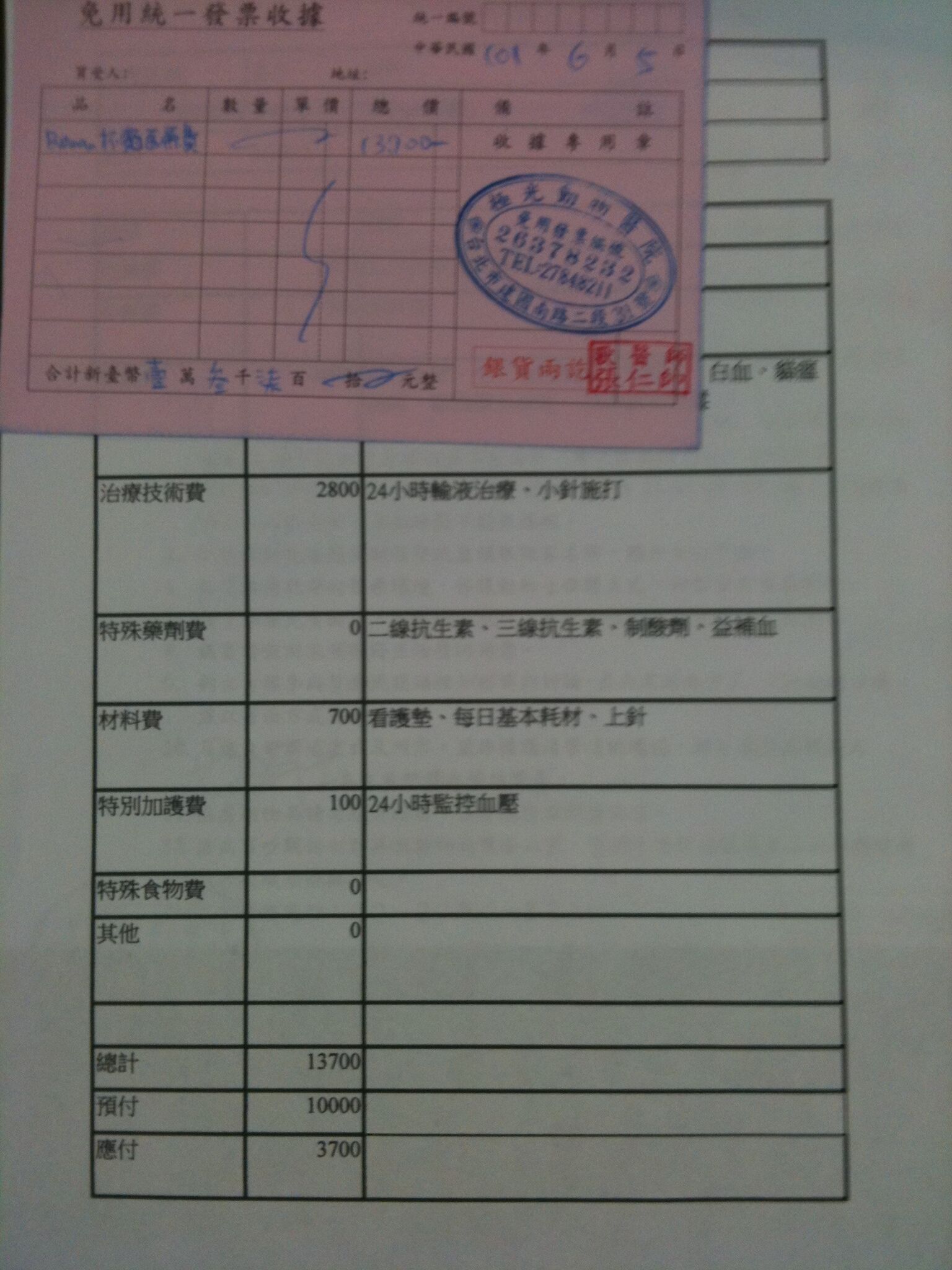 轉院至台北就醫,檢查為慢性腎衰竭,