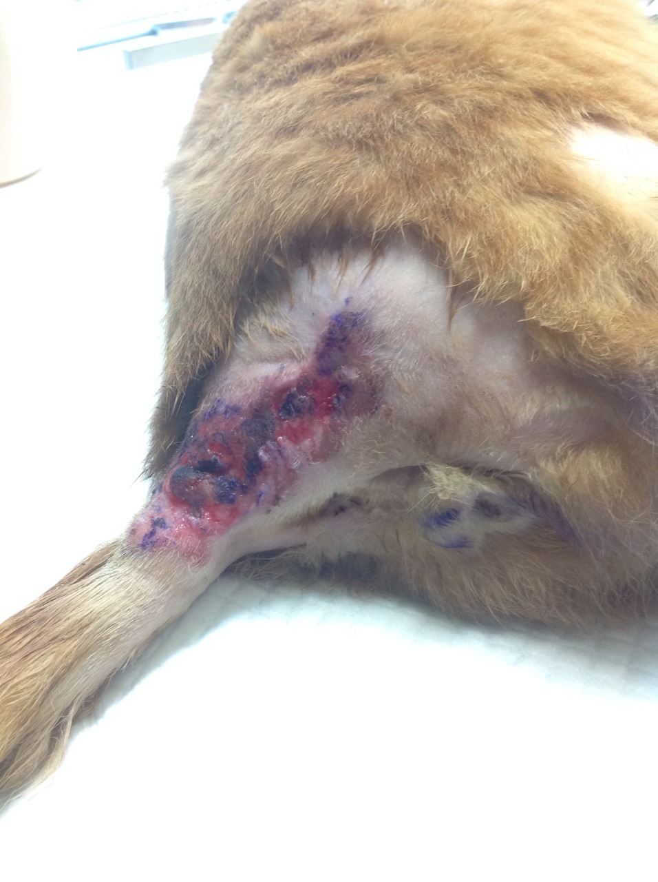 主題: 右側屁股及尾根部蜂窩性組織炎的大橘貓 申請者姓名: Yvonne Chu 花色: 申請日期: 2014-03-16 16:08:33 申請者部落格: 申請者臉書網址: 所在縣市/合作醫院: 高雄市/銀星動物醫院 治療費用: 9900元 需求人數: 12人 已結案 (2014-05-18 09:41:02) 報名人員: 七一四、七一四(已付款)、Ou Han x2(已付款)、Chris Joan eddy(已付款)、Min-Hua LI(已付款)、naifulei x6(已付款)、陳昱先(已付款)、 候補人員: 動物病情說明: 大橘子是我多年前結紮的公貓,去年就發現牠的尾部出現可能因為打架而造成的傷口,但因為曾進過誘捕籠的小傢伙怎麼也不願再進籠,只好買消炎藥放進罐頭裡給牠吃了快半年的時間(中間怕傷到牠的肝腎又必須停藥),但傷口結枷後因為會癢牠又舔又抓,使得受傷的地方不但沒有好轉反而日益嚴重!也曾試過噴藥和擦藥都沒有效果,因為傷口十分深層。今年一月二十八日總算讓我用誘捕籠再次捕獲帶到合作醫院治療,醫生診斷後判定應已變成蜂蜜性組織炎需帶頭套及傷口清創和吃藥打針,過程中因為大橘子很排斥所以很兇,清創時只能施以鎮定劑,也因為傷口深層,所以恢復期較長。力量微薄,只好求助協會的幫助,讓牠能得到完善的醫療,根治牠的傷! 動物近況說明: 如今橘子已經傷口痊癒原放回社區,每天又很開心的跟另外兩隻母貓生活在鄰居廢棄的倉庫裡,我每晚都會去餵食,很感謝協會的協助募款和所有捐款幫助橘子的朋友,因為有你們,橘子的屁屁不再流血化膿,可以好好的過日子了。