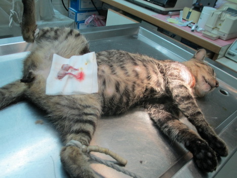 主題: 肩胛骨處爆膿的虎斑貓 申請者姓名: 蔡葦澄 花色: 申請日期: 2012-06-07 23:31:26 申請者部落格: 申請者臉書網址: 所在縣市/合作醫院: 台北市/欣旺動物醫院 治療費用: 3500元 需求人數: 9人 已結案 (2012-12-01 19:56:05) 報名人員: 靜小芳(已付款)、Linda Wang(已付款)、私はお 金が要ります(已付款)、黃美菁(已付款)、blue(已付款)、九妹(已付款)、Yang Ying Ling(已付款)、張智麟、小蘋果(已付款)、私はお 金が要ります、小舟(已付款)、 候補人員: 小舟、 動物病情說明: 大道里捕捉的虎斑大公貓,本來只是要結紮,麻醉後發現右肢肩胛骨突出且有不明腫塊,切開後發現感染嚴重、爆膿,形成一個空腔,清創後將傷口縫合,並照X光確認骨頭部分無異常,公貓沒有結紮常常會打架、爭地盤,落得滿身是傷,不小心發炎變成蜂窩性組織炎,嚴重感染可能會導致死亡,所以公母貓都需要結紮,除了不會繁衍下一代,更可以維護生活品質,貓咪後續需兩週抗生素治療,就可以R回原地。醫療費用還請各位幫忙。