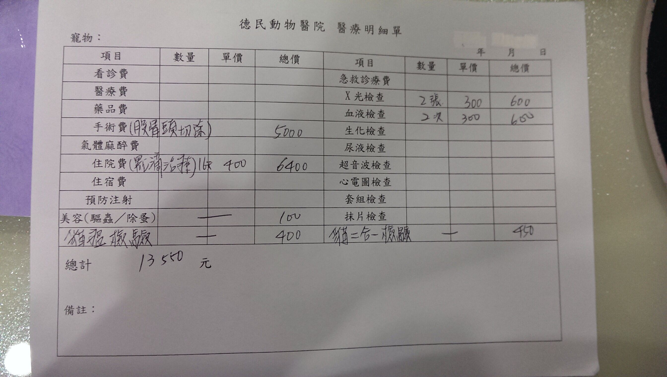 主題: 高雄小貓被機車撞到骨折 申請者姓名: Sexson Dai 花色: 申請日期: 2014-02-09 12:00:12 申請者部落格: 申請者臉書網址: 所在縣市/合作醫院: 高雄市/新德民動物醫院 治療費用: 13550元 需求人數: 15人 已結案 (2014-03-24 18:14:14) 報名人員: 彭小花(已付款)、Patrick x2(已付款)、Kristy Lee(已付款)、Eva Tsai、烙跑專用(已付款)、徐米奇(已付款)、Melody Wu(已付款)、julie lee(已付款)、橙小瑩(已付款)、Hsiao-Peng Su(已付款)、孟孟 x2(已付款)、Meng-Chen Tseng(已付款)、小娃(已付款)、佳淳(已付款)、 候補人員: Bagel Li、 動物病情說明: 貓咪在本月大年初三和志工朋友去吃早餐遇到的,走路非常異常是用蹬的,詢問早餐店老闆說一個星期前被機車撞到,前腳有明顯外傷,指甲已外翻,後腳雖無明顯外傷但後腳無力,無法正常行走和跳,當下就和另一名志工朋友就請老闆幫我們留意,準備誘補小貓,小貓已確定是浪貓,因為貓媽媽會帶他們來向早餐店老闆討食,我於今天民國103年2月4日下午三點左右送到高雄德民動物醫院,醫生初步診斷左後腳有照X光確定斷掉,右前腳掌指甲外翻,手術費及醫療費醫生估約10000左右 動物近況說明: 小貓術後身體狀況正常,恢復的不錯,我會將他帶回家中途療養,直到好了,在將小雪找個好主人