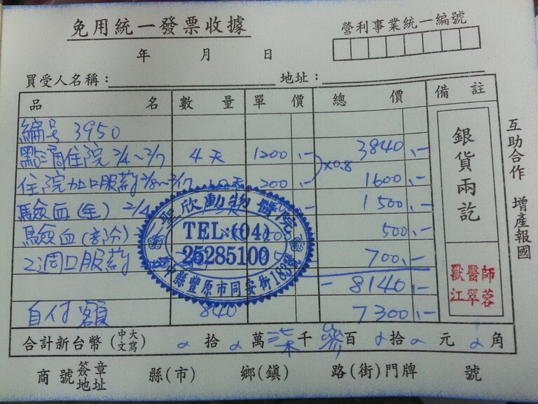 拜託協會救救他,龐大的費用還是學生的我真的負擔不起....動物近況說明: 目前貓咪已經出院,交由朋友幫忙照顧,讓牠過無憂無慮的養老生活了^^,醫療明細如下: