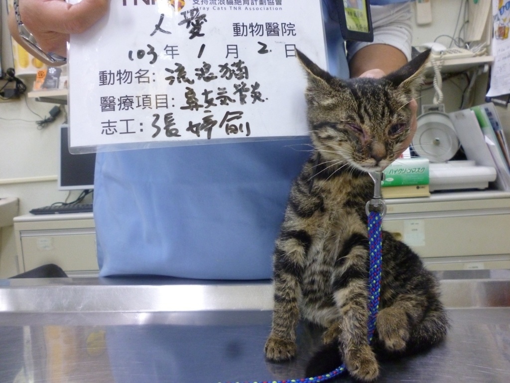 主題: 雙眼嚴重鼻氣管炎小小貓 申請者姓名: 張婷俞 花色: 申請日期: 2014-02-10 02:54:01 申請者部落格: 申請者臉書網址: 所在縣市/合作醫院: 高雄市/人愛動物醫院 治療費用: 3468元 需求人數: 8人 已結案 (2014-02-11 17:32:01) 報名人員: 周克文(已付款)、亭亞 x2(已付款)、Nat Niu(已付款)、謝佩芳(已付款)、Kuan Kai-Yang(已付款)、ONE(已付款)、高永顗(已付款)、 候補人員: 動物病情說明: 跟1�2報醫助2隻雙眼嚴重的是同胎小貓,眼睛非常嚴重鼻氣管炎,住院醫療了共17天,1�13小玳瑁吐迴蟲、開始不吃,1�17,併發貓瘟...3隻小朋友同天發病...當天陸續走了..很難過..請大家幫3隻小朋友一程...謝謝大家 動物近況說明: 3小貓同天發病,1�17病發貓瘟離開了