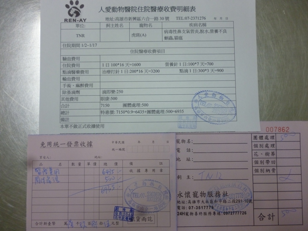 院長也考量我們都是盡力想救貓咪們,所以最後同意5折,謝謝院長、協會、大家的體諒跟幫忙。