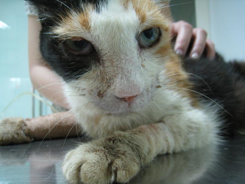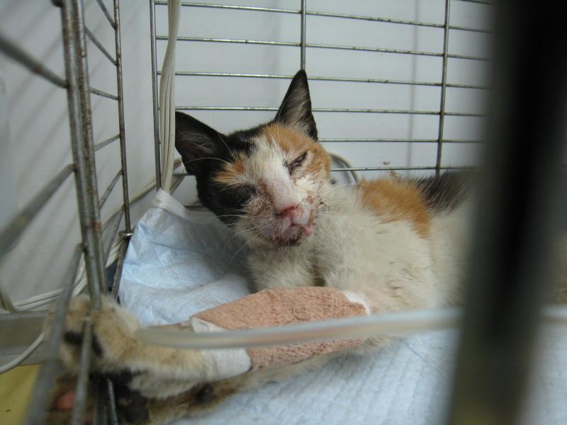 帶至鄰近的醫院治療檢查,發現有愛滋病的帶原,還有嚴重的上呼吸道感染問題。