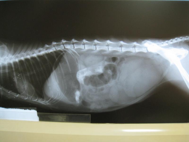 應該是在流浪時吃的東西沾染到的,或是誤食進去的。