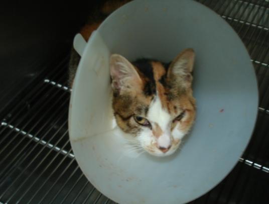 吳醫師評估,如果貓咪不是在戶外生活的話. 則無須再作截肢重整手術. 我們不打算再原地野放,所以就不作截肢重整手術. 廖小姐自費負擔此貓的驗血費用,確診愛滋病陽性. 也自費購買提升免疫力的保健品給貓咪食用調養體質. 因為頸部有瘜肉須切除,再加上有呼吸道感染,所以留院手術治療.