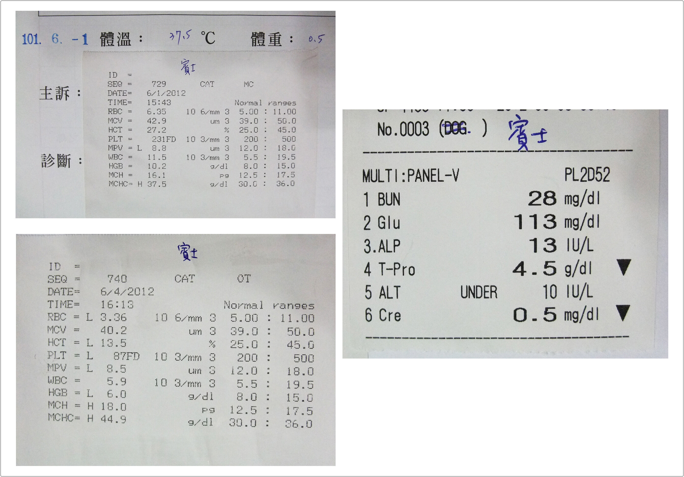 但不知道是餓太久,還是胃部也受到侵蝕性的傷害,灌了5cc的安素,就吐了將近3cc出來,其中灰白色的那一隻小貓還不停的拉血便,狀況之悽慘,讓人忍不住掉淚。