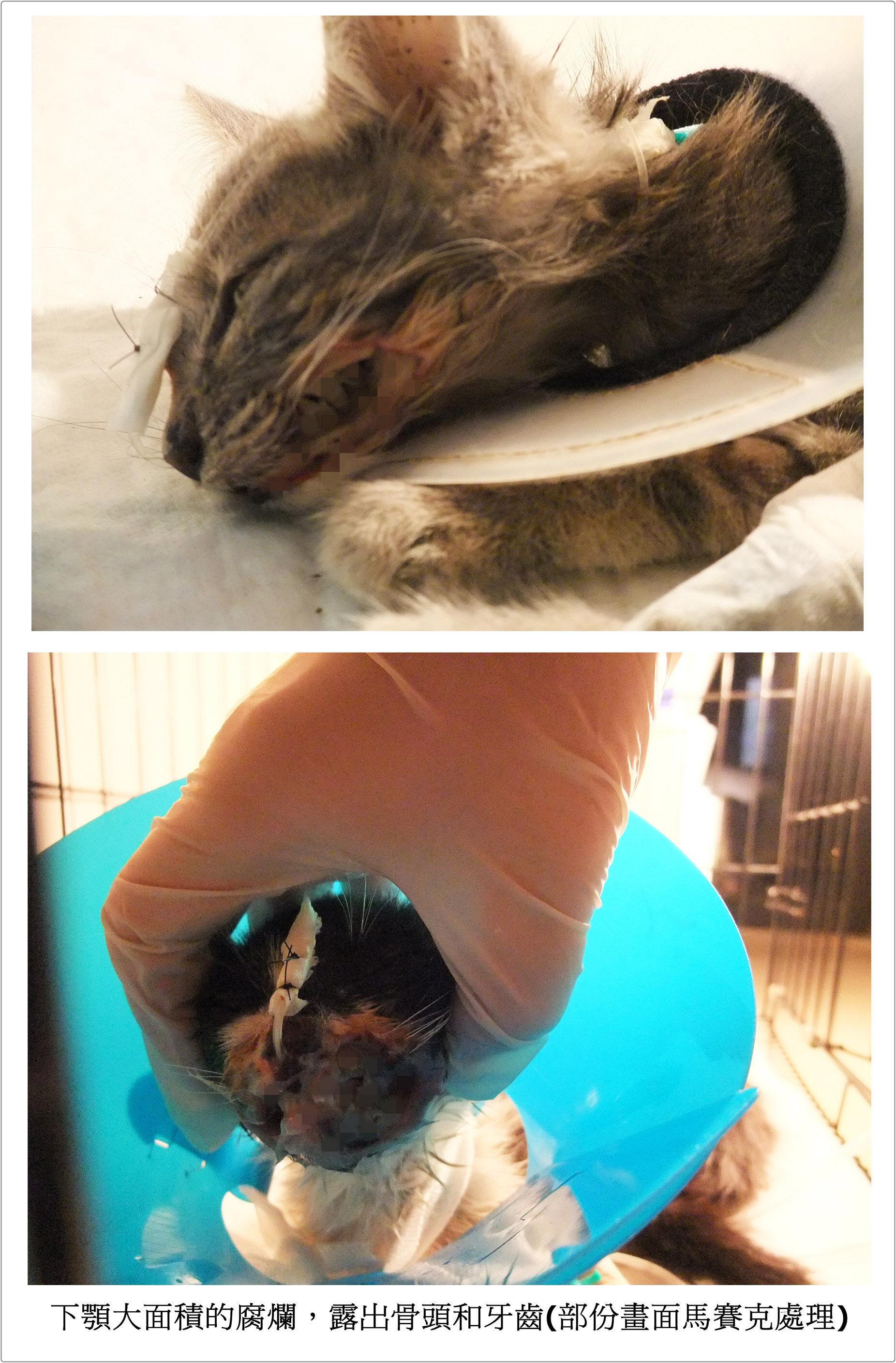 小貓送到醫院當天,醫生立即幫他們保溫及打點滴,並幫他們清除口腔及下顎已腐爛的肉塊,其中,還從一隻小貓的嘴裡夾出了一條蠕動的蛆…。