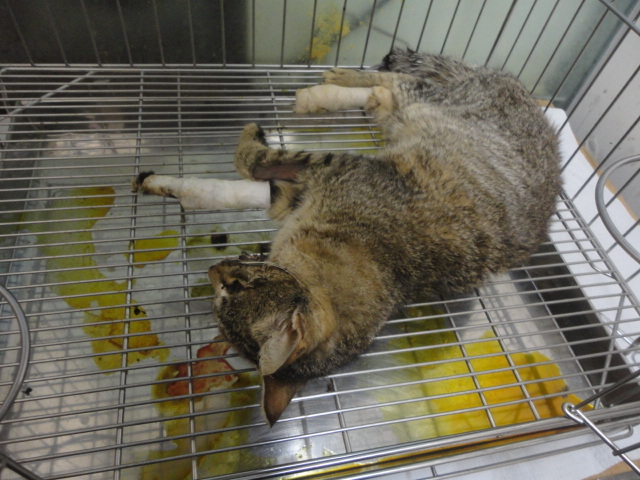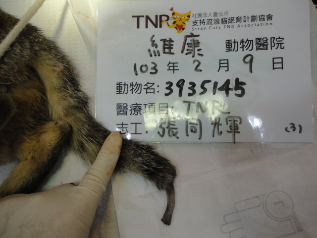 103/02/09觀察兩天後結紮,當下發現尾巴+趾縫組織壞死,馬上做清創處理。