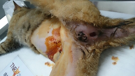 貓咪住院從2月20日到3月6日,傷口拆線出院,共15天。目前由志工接回照顧,等天氣回暖,調養一段時間,再R回關渡宮前,由愛媽繼續餵養。